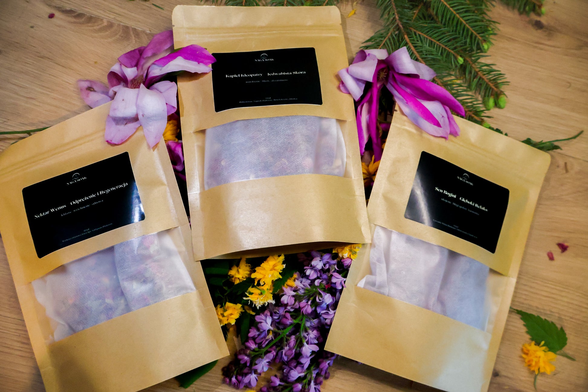Zawiera po 2 sztuki z każdej z 3 rodzajów herbat (razem 6 kąpieli)